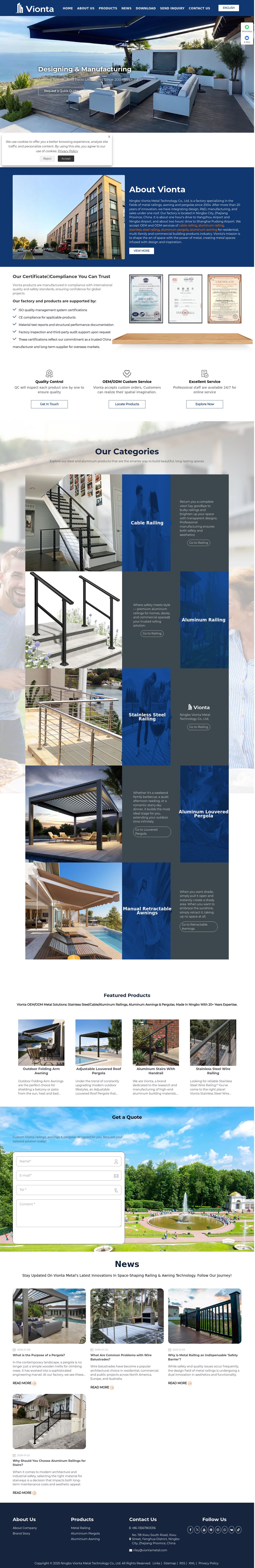 China Metal Railing, Aluminium Pergola Supplier, Aluminium Awning Manufacturer - Vionta